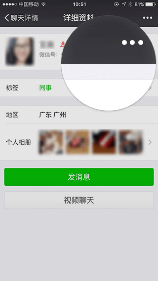 若你的侵权投诉针对的场景为微信帐号昵称、头像或个性签名等个人资料的:打开微信客户端,进入投诉对象 “详细资料”页 > 轻触右上角“...” > 选择“投诉” > 选择“侵权”;